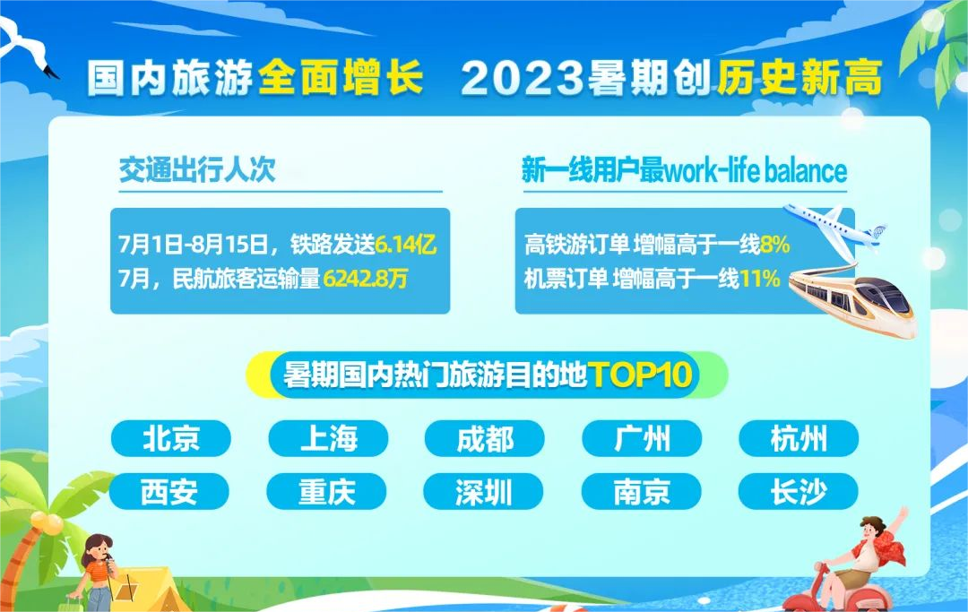 最火爆暑期即将落幕,近日,携程发布《2023年暑期出游市场报告》,《报告》显示,今年暑期,国内旅游市场较2019年实现全面增长,7月1日至8月15日,全国铁路暑运累计发送旅客6.14亿人次,8月12日发送旅客1532.6万人次,创暑运单日旅客发送量历史新高。